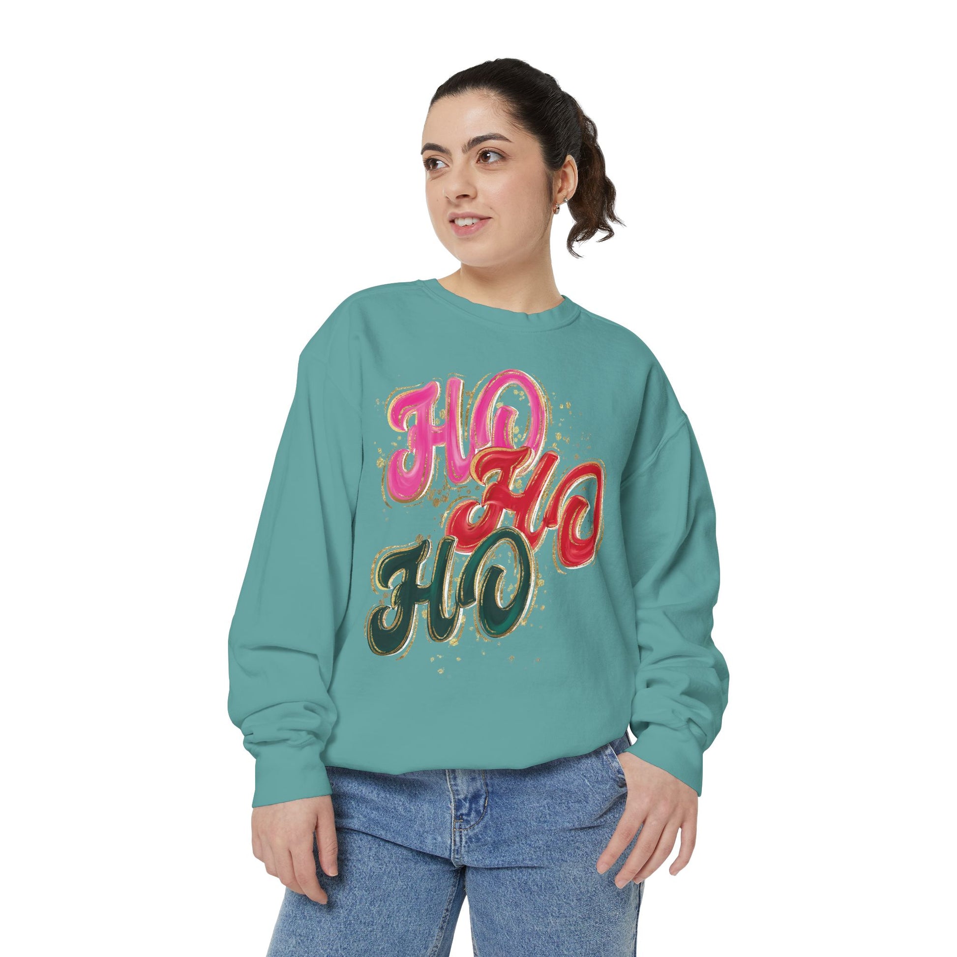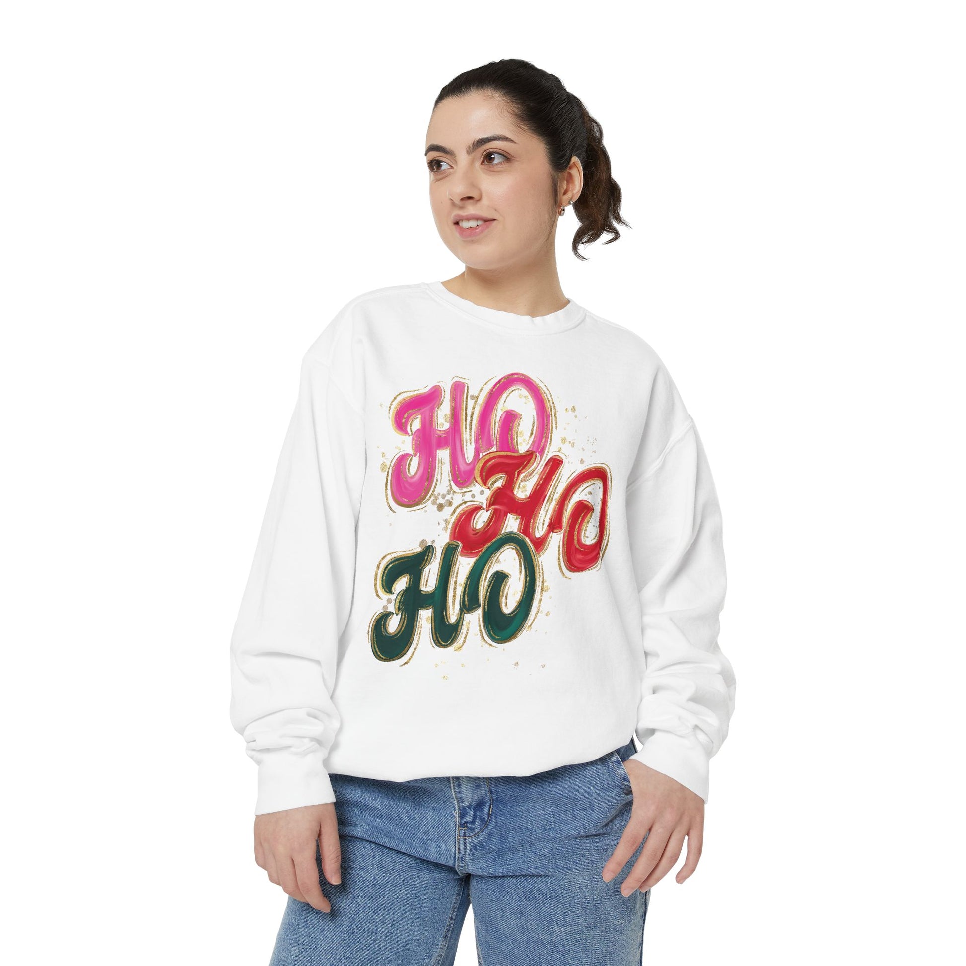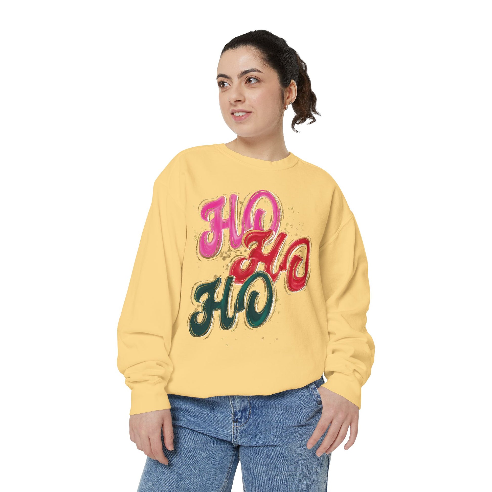 Stay cozy and showcase your festive spirit with this Unisex Garment-Dyed Sweatshirt. Made for comfort, this sweatshirt wraps you in a soft embrace, perfect for chilly days and cozy evenings. The vibrant 'HO HO HO' design adds a playful touch that instantly elevates your holiday wardrobe. It's ideal for family gatherings, holiday parties, or just lounging at home while sipping hot cocoa. Suitable for anyone who loves to celebrate the festive season, this sweatshirt brings warmth and joy to your winter celebrations, whether it’s Christmas or a cheerful holiday get-together.